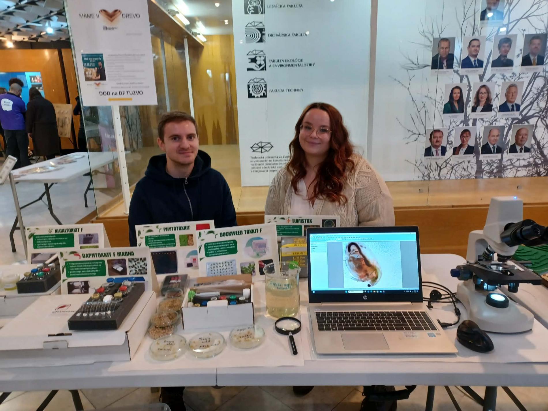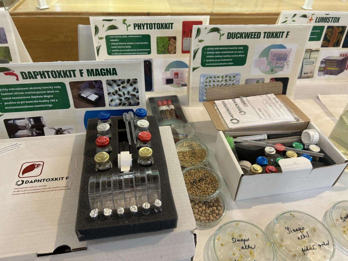 V prvom stánku sa pozornosť sústredila na problematiku ekotoxicity a jej hodnotenie pomocou mikrobiotestov. Návštevníci mali možnosť zoznámiť sa s modernými metódami hodnotenia vplyvu rôznych látok na životné prostredie a ich praktickým využitím v environmentálnom inžinierstve. Prezentované boli testy: DaphToxKit F magna , Duckweed ToxKit F, Phytotoxkit, AlgalToxKit F, LumiStox. Cieľom prezentácie bolo priblížiť význam ekotoxikologických testov pri hodnotení kvality zložiek životného prostredia a poukázať na ich využitie vo vedeckej aj aplikačnej praxi.